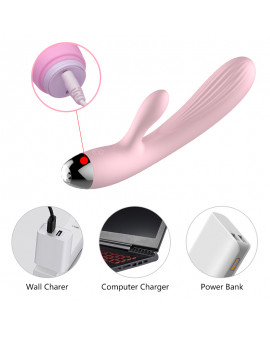 Wibrator-Silicone Vibrator and Pulsator Pink USB 10 Function / Heating