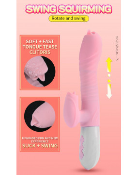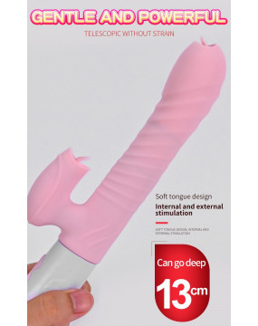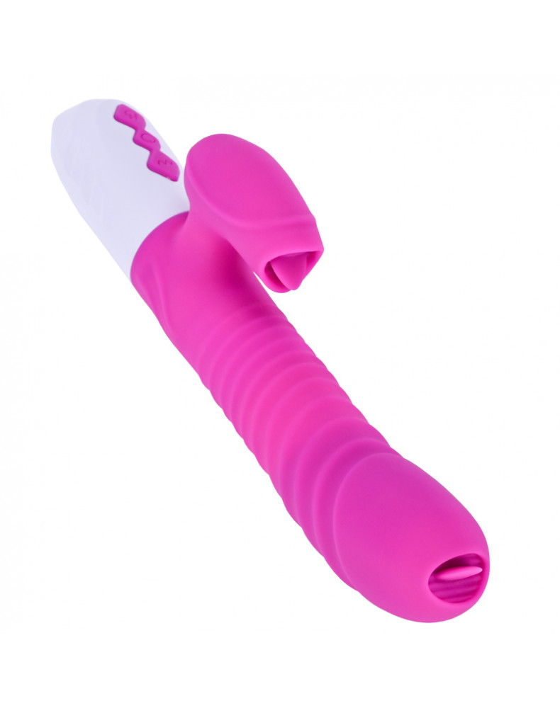 Fantastyczna zabawka oprócz unikalnego stymulatora łechtaczki oraz stymulatora punktu G w postaci ruchomego języczka, posiada unikalny ruch posuwisto-zwrotny połączony dodatkowo z rotacją.