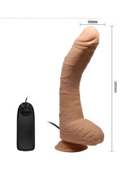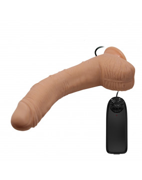 Ten niesławny zakrzywiony dildo z punktem G jest teraz wyposażony w wibrator! Zanurz się głęboko, aby pieścić swój punkt G lub prostatę! Wsuń go z łatwością, dzięki podstawie z przyssawką możesz również jeździć solo. Śmiało, chwyć tego potężnego penisa z kulkami, które są miękkie, wyrzeźbione i teksturowane, aby uzyskać niesamowicie realistyczne wrażenia! Jego podstawa z przyssawką pozostaje umieszczona na dowolnej płaskiej powierzchni i jest również kompatybilna z uprzężą!