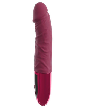 Zmysłowy wibrator VARELO od beau cour zachwyca realistycznym wyglądem penisa, wykonaniem z eleganckiego materiału o jedwabistym macie i połysku oraz głębokim, czerwonym kolorem.